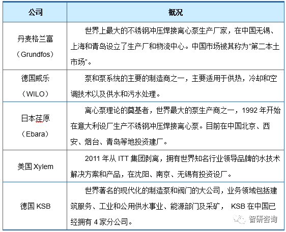 從全球泵行業(yè)的企業(yè)格局來看,全球泵主要生產(chǎn)企業(yè)有丹麥格蘭富、日本荏原(Ebara)、美國ITT、德國威樂(WILO)、德國KSB等,可以認(rèn)為,發(fā)達國家的泵市場基本被少數(shù)幾家寡頭壟斷,市場集中度很高。