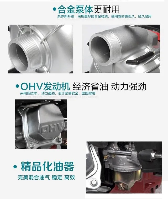 1.汽油機水泵使用前,務必在曲軸箱內(nèi)加入指定機油。