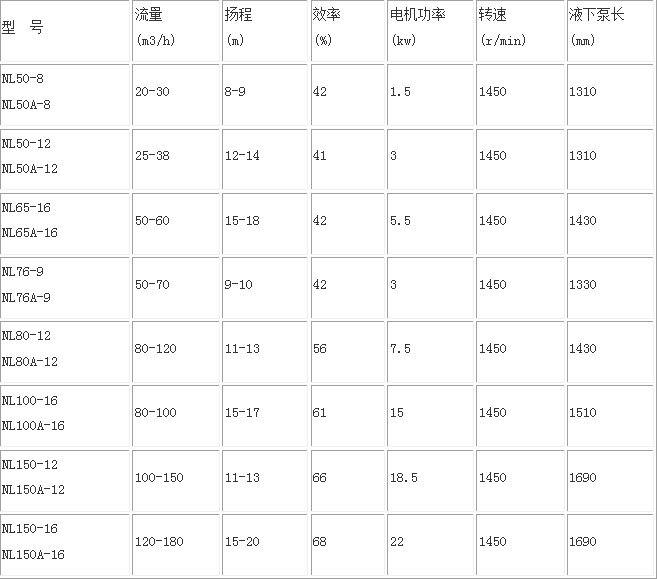 NL型污水泥漿泵為單級(jí)單吸立式離心泵,主要部件有蝸殼、葉輪、泵座、泵殼、支撐筒、電機(jī)座、電動(dòng)機(jī)等組成。蝸殼、泵座、電機(jī)座、葉輪螺母是生鐵鑄造、耐腐性、耐腐蝕性較好,加工工藝方便。