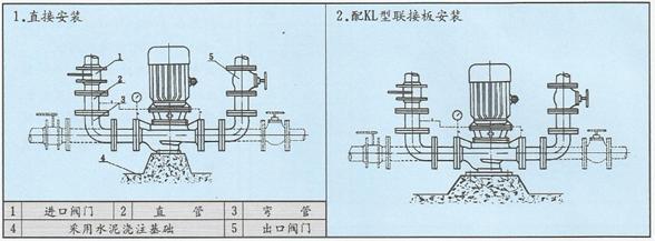 6、ISG離心泵分硬性聯(lián)接安裝和柔懷聯(lián)接安裝兩種(見聯(lián)接方式)。