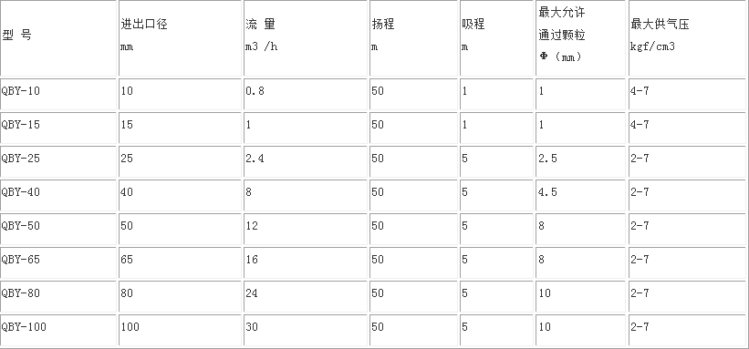 QBY氣動(dòng)隔膜泵性能參數(shù)