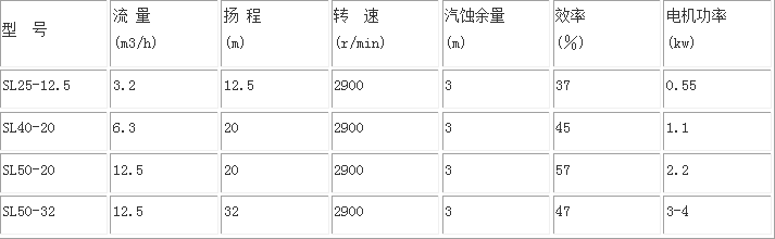 SL型玻璃鋼管道泵技術(shù)參數(shù):